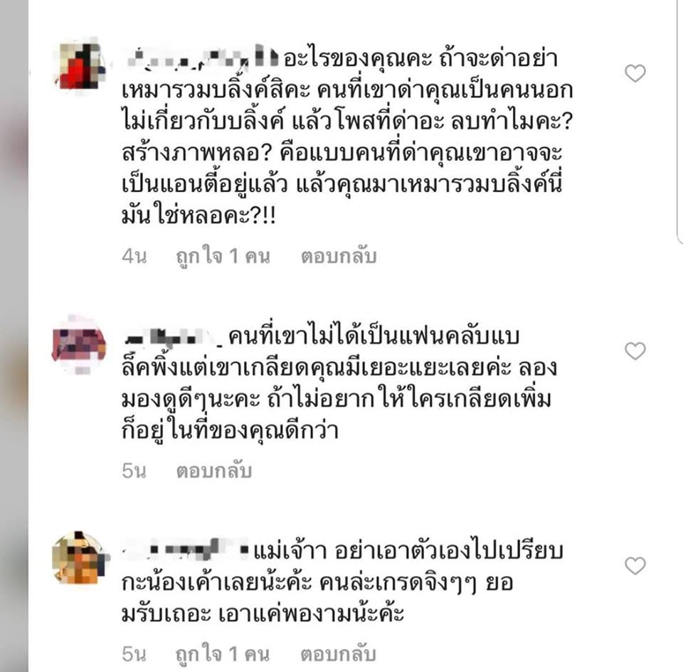 “(ลองดูน้าละอ่านให้ครบทุกรูปนะคะ ว่าบลิงค์ที่เข้ามาว่าพี่แตพิมพ์อะไร) ที่ลงรูปนี้อีกที จุดประสงค์เพราะบลิงค์(บางคน) เข้ามาปกป้องตัวเอง(มากกว่า) ว่าพี่แตเหมารวม บอกว่าไม่ใช่บลิงค์ที่เข้ามาด่า รูปก่อนไม่ได้เลือกเอารูปที่มีบลิงค์ด่าลง (เพราะไม่ได้คิดไร ว่าต้องมีรูป55) และมันเยอะมาก พี่ก็ขี้เกียจ(แค่คิดว่าลงแค่นั้นน่าจะพอ) แต่ก็มีกลุ่มที่บอกตัวเองเป็นบลิงค์มาว่าพี่แต ไม่พอใจพี่แต งั้นรูปนี้สักรูปเดียวพอเนาะ รูปโปรไฟล์หน้าลิซ่าขนาดนี้ใช่บลิงค์ไหม? ”