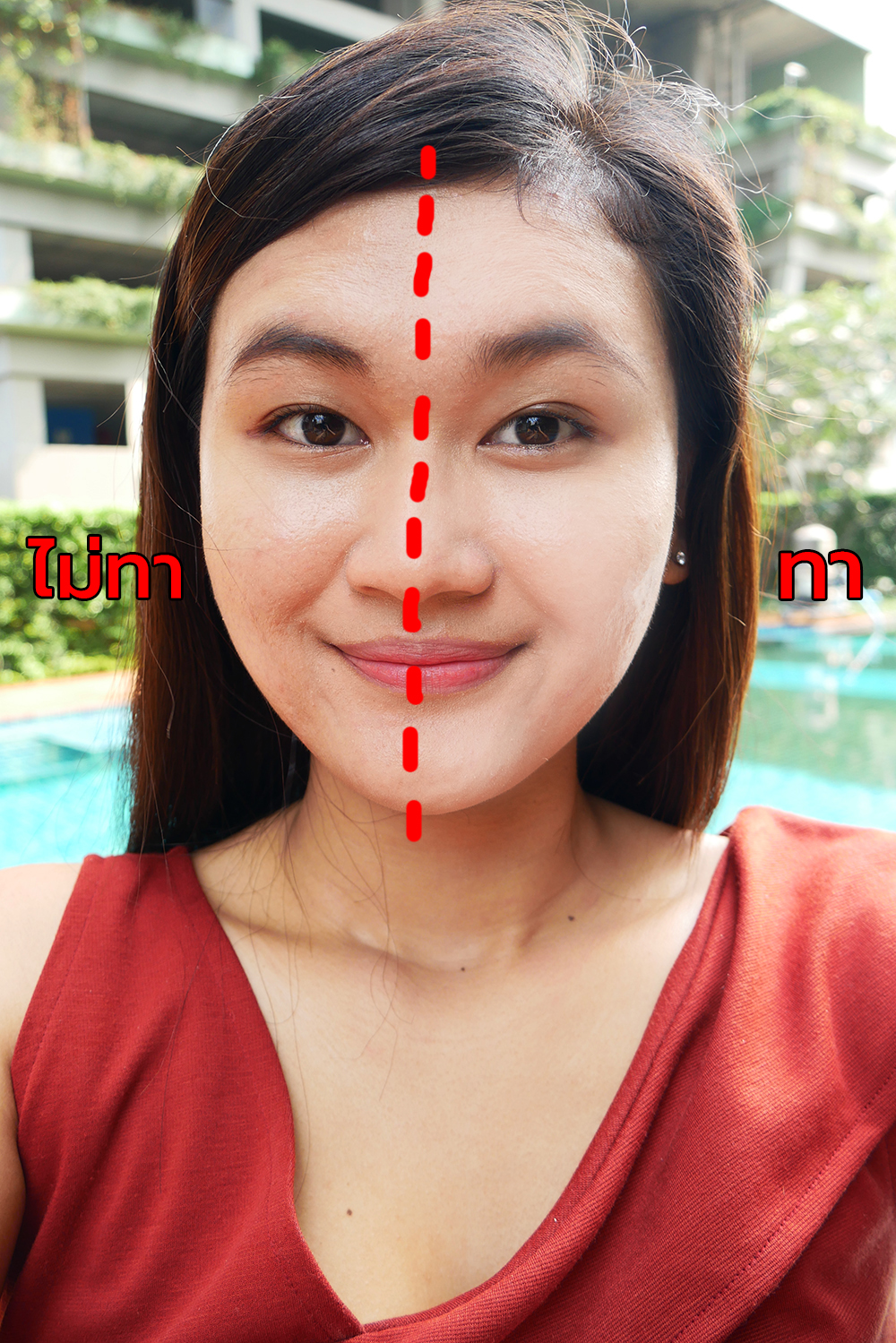 อันนี้ทาคนละฝั่งให้เห็นกันไปเลยว่าผิวดูเรียบเนียนและส่วางขึ้นมานิดนึงค่ะ