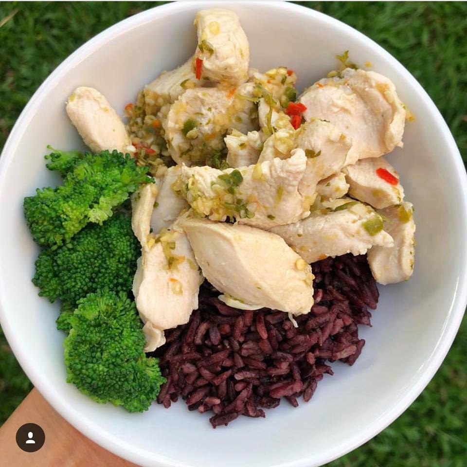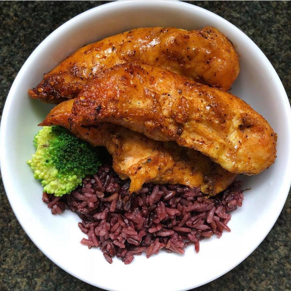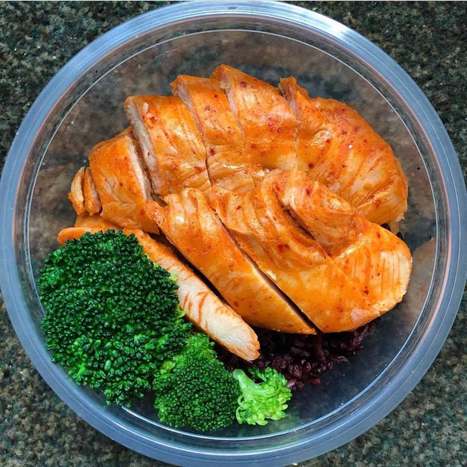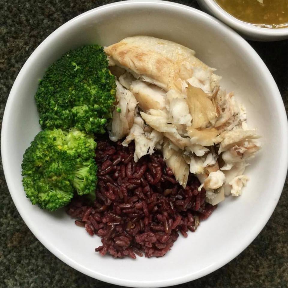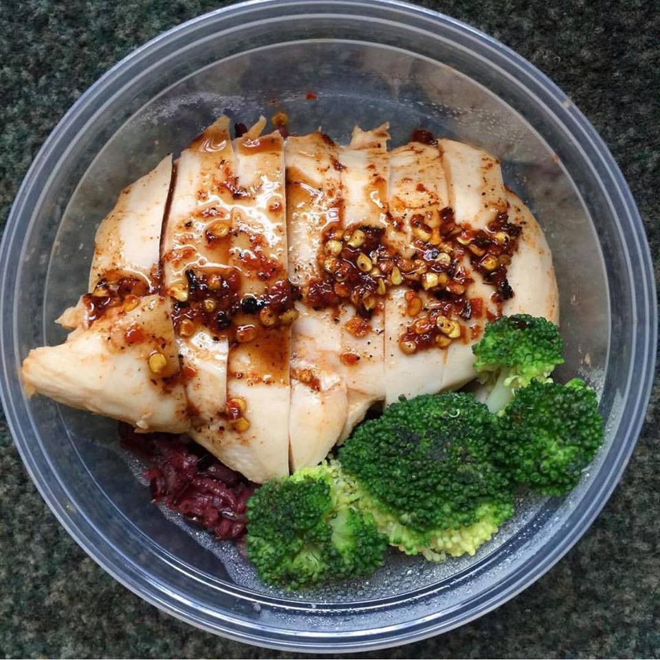 ข้าวกับอกไก่อบชานอ้อย ซื้อจากซุปเปอร์มาร์เกตหรือซุ้มไก่ย่างห้าดาวแถวบ้าน เอาแบบเป็นแพคยังไม่ได้ย่างนะฮะ ตอนจะกินหั่นละเข้าเวฟ 1 นาที กินได้เลย ถ้าเคร่งมากก็ลอกหนังออกก่อน