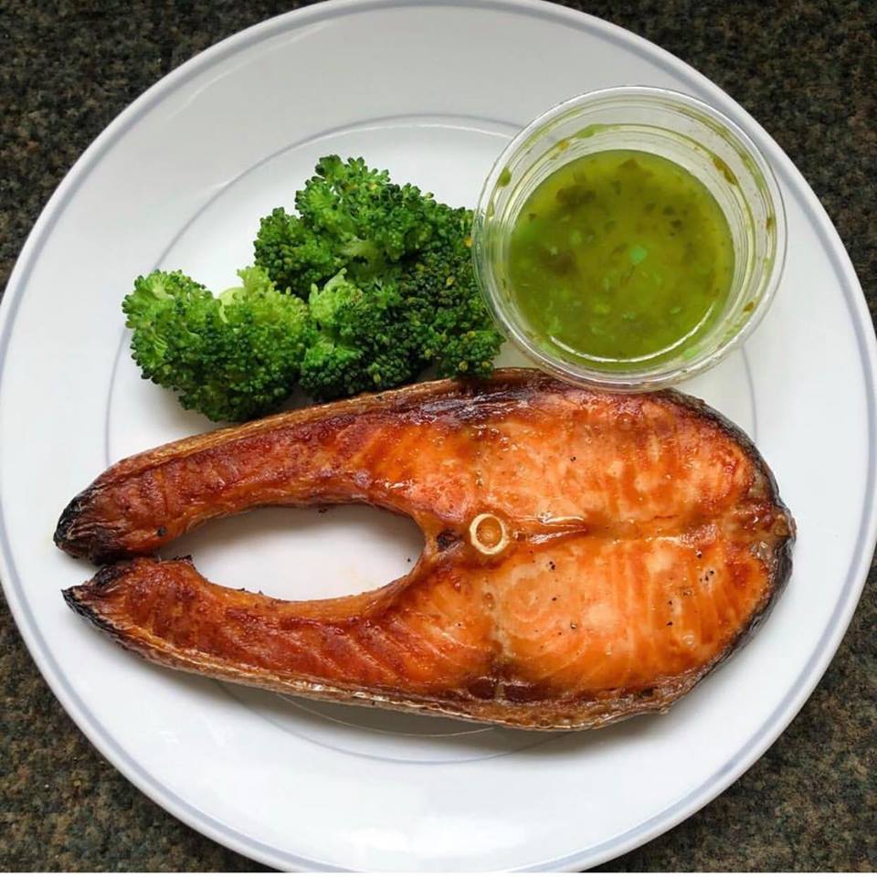 แซลมอนย่าง กินกับน้ำจิ้มซีฟู้ด