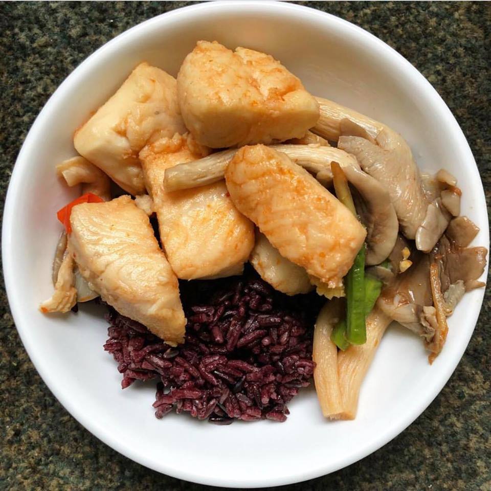 ข้าวกับสันในไก่หมักพริกแกง อันนี้ไม่คลีน แต่ลีนมาก