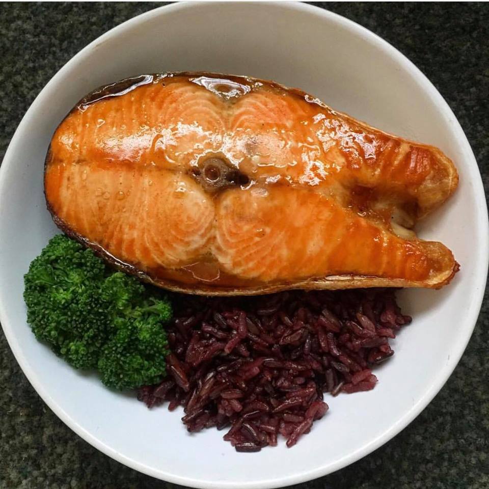 ข้าวกับแซลมอนย่างซอสเทริยากิ