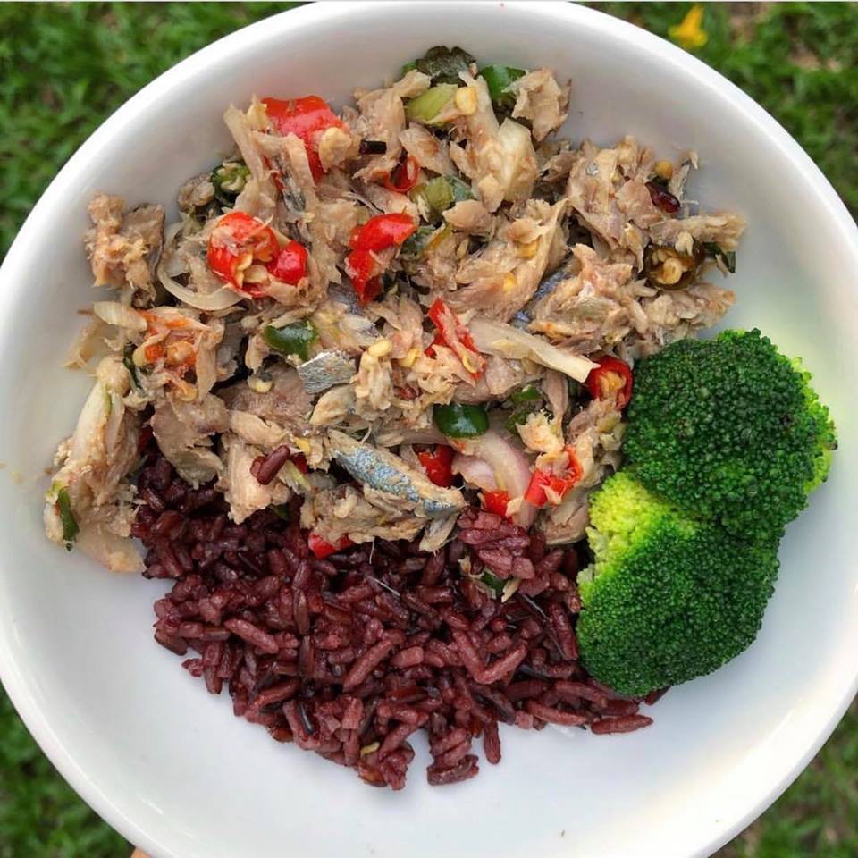ข้าวกับแกงป่า มีเนื้อปลาด้วย จริงเป็นแกงอะไรก็ได้ เน้นไม่มัน ไม่ใช่แกงกะทิ