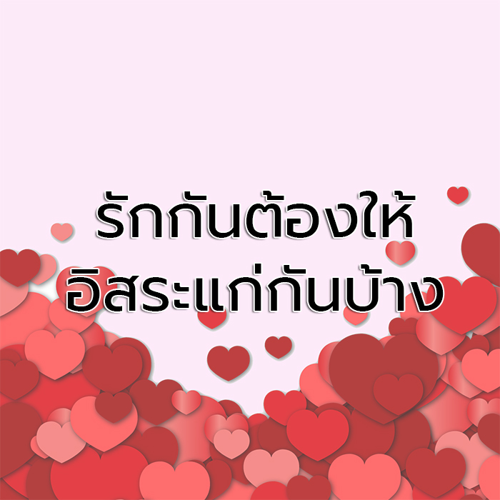 ถ้าเค้าจะไปไหนมาไหนกับเพื่อนแต่เรากลับไม่ให้เค้าไปถ้าเป็นแบบนี้บ่อยๆ คู่ของเราอาจจะอึดอัดได้ เพราะฉะนั้นควรให้เค้าไปเป็นครั้งคราวบ้างนะคะ ไม่ต้องบ่อยๆ ก็ได้ค่ะ สักเดือนละครั้งสองครั้งเพื่อให้เขารู้สึกดีที่เราให้อิสระแก่เขา ทำแบบนี้รับรองคบกันยืดแน่นอนค่ะ เพราะว่าต่างคนต่างมีพื้นที่เป็นของตัวเองบ้างไม่ใช่พื้นที่ส่วนรวมเพียงอย่างเดียว