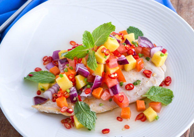 แค่สีสันก็น่ากินสุดๆ แล้ว สำหรับเมนู อกไก่ยำมะม่วง อกไก่ เนื้อแน่นกริลล์จนสุกเหลืองหอม ราดด้วยยำมะม่วงรสแซ่บ ที่ได้ความสดชื่นของมะม่วงมาเพิ่มความสดชื่นและความอร่อยให้อาหารดียิ่งขึ้น